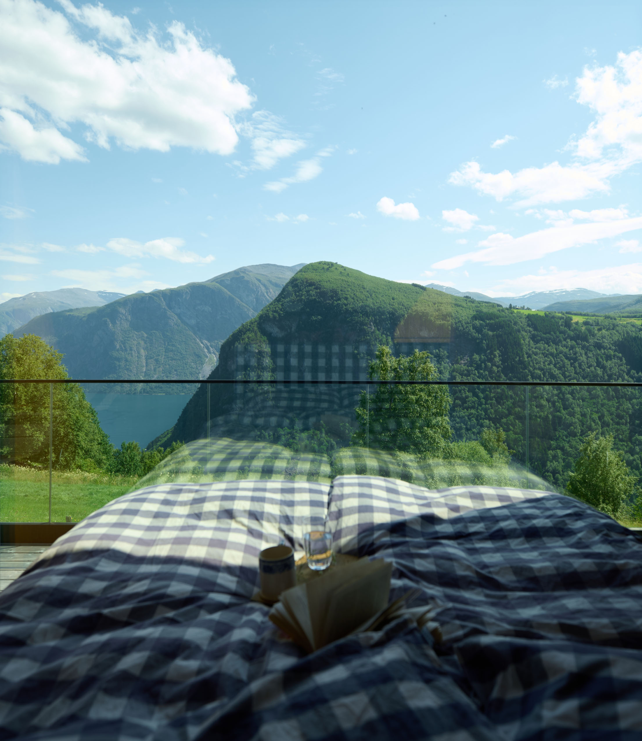 "Designkvalitetene, funksjonelle løsninger og et sterkt fokus på detaljer. De store skyvedørene løfter frem omgivelsene utenfor vinduene – det mektige landskapet og nærheten til naturens elementer."